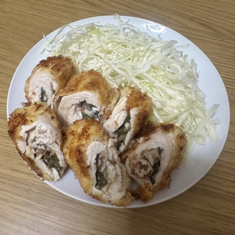 写真はボロボロになっちゃった梅ささみチーズ揚げ😭